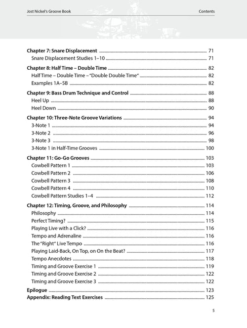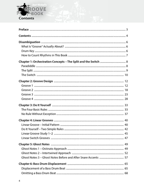 With so much expectation on the drummer to provide the groove and set the feel for the band, it is no longer just a matter of what is played, but how it is played. This is the focus of Jost Nickel’s Groove Book. He shows how to design grooves using various orchestrations including splits and switches, ghost notes, snare and bass drum displacements, linear groove concepts and much more.